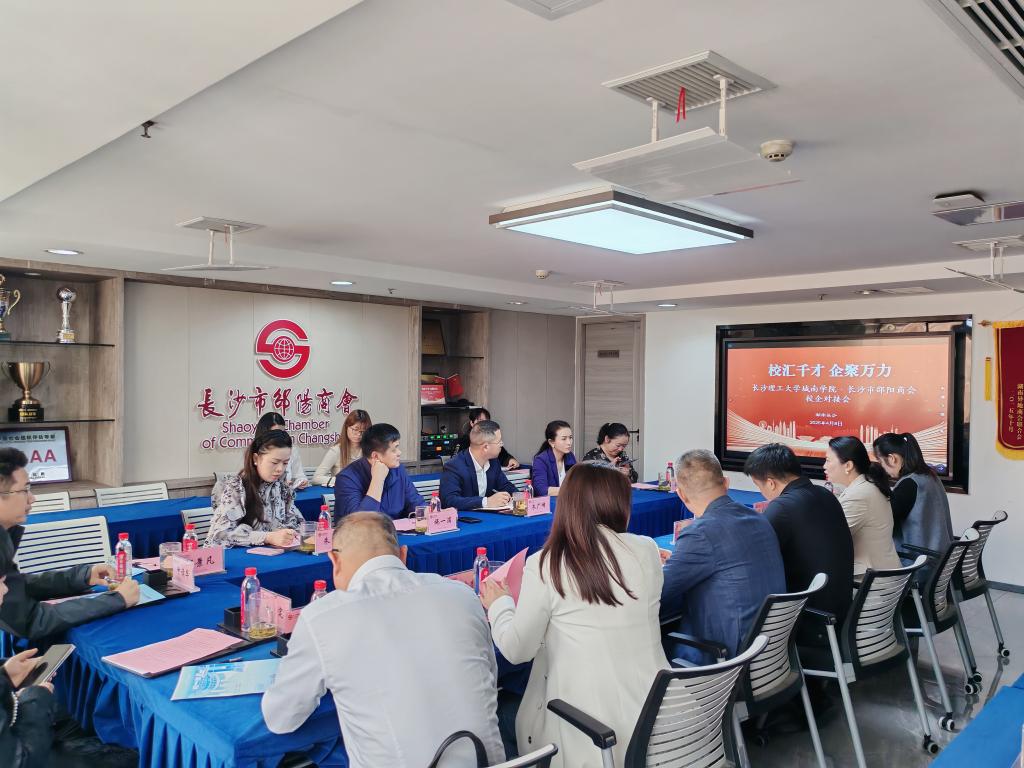 为拓宽毕业生就业渠道,推动产教深度融合,4月8日,长沙理工大学城南学院党委书记施一满、副院长朱广峰、招就办主任杨李、经济管理系党总支书记朱骞等前往长沙市邵阳商会开展交流活动。此次交流不仅是学院与商会之间的首次"亲密接触",更是双方在人才培养、校企合作等领域探索合作新模式、共谋发展新机遇的重要开端。