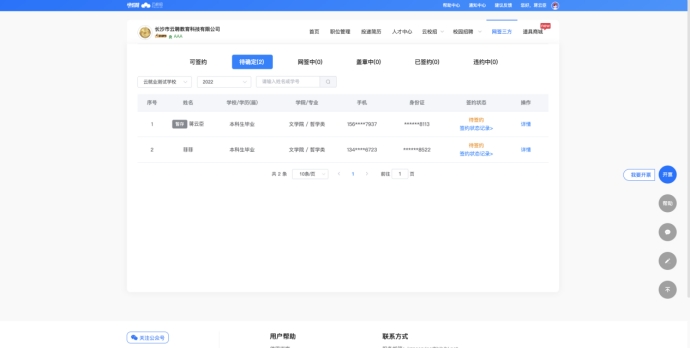 方式一:进入【云校招】-【三方协议】-【盖章中】模块点击【单位盖章】扫码完成签名