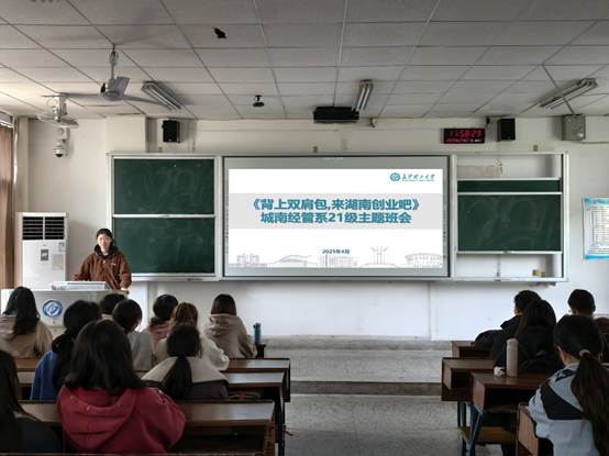 近日,长沙理工大学城南学院组织召开主题班会,向学生传达《湖南省大力支持大学生创业若干政策措施》精神,重点聚焦 “七个一” 举措与2025年“金种子杯”大学生创业大赛。