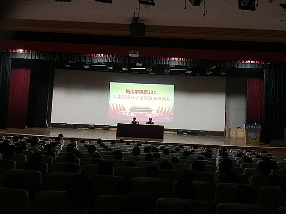 5月21日中午,城南学院分党校第33期入党积极分子培训班开班典礼在五教大礼堂举行,院党委副书记王明彦出席开班典礼并讲话。学院党务部老师以及全体学员参加开班典礼,典礼由经济管理系党总支委员谭怀芝老师主持。