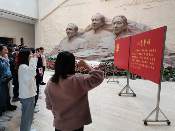 最后,全体党员集体在湖南党史馆宣誓,重温入党誓词。