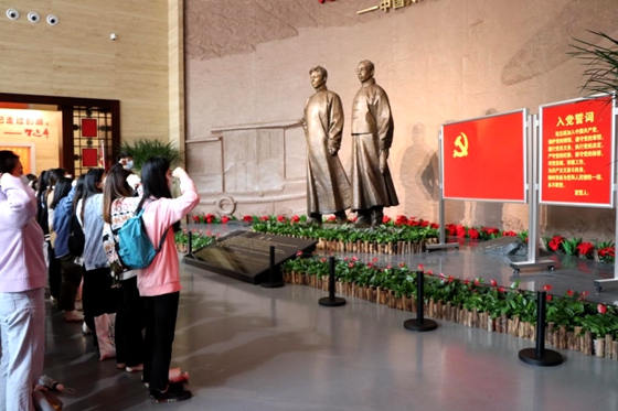 “温峥嵘岁月,感百年沧桑”,为重温红色历史,了解老一辈无产阶级革命家为了新中国成立而不惜抛头颅洒热血的历史印记,5月10日下午,文法艺术系第16期发展对象和第25期预备党员在党总支书记谭怀芝老师的带领下,一同前往中国共产党长沙历史馆参观学习,重温建党百年风雨路。