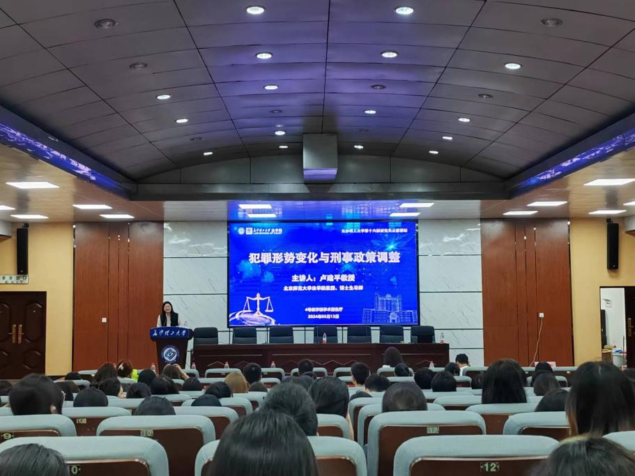 本次讲座由北京师范大学法学院教授,博士生导师,国务院法学学科评议组成员,教育部法学教指委委员卢建平主讲。长沙理工大学法学院院长张敏纯主持。法学院田兴洪教授、副院长申纯以及200余名师生参加讲座。