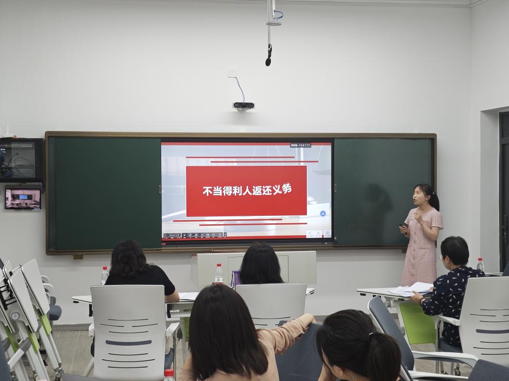 四位选手分别以《以“大思政”育人体系推动涉外法治人才培养》《德法兼修、典则结合—合同法“典则式”教学思政教学》《弘扬社会主义核心价值观、培养德法兼修高素质法治人才》《专业社会调查》为主题进行了课程设计与授课展示。三位评审专家针对参赛选手的课堂教学设计作品、教学内容、教学仪态等进行了逐一点评。