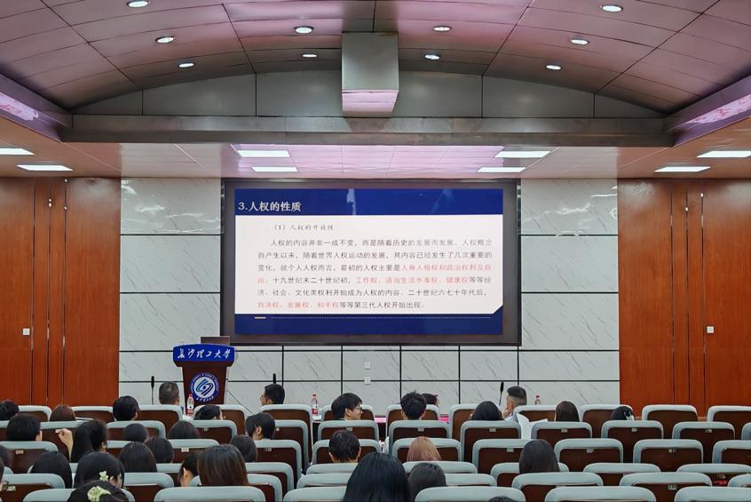 5月26日晚七点,长沙理工大学法学院教师,中南大学国际法学博士盛喜,在金盆岭校区作题为解码国际人权法的“成长基因”:从历史胚胎到现代体系的通识教育讲座。本次讲座主要围绕国际人权法的相关内容展开,吸引了全校法学爱好者50余人参加。