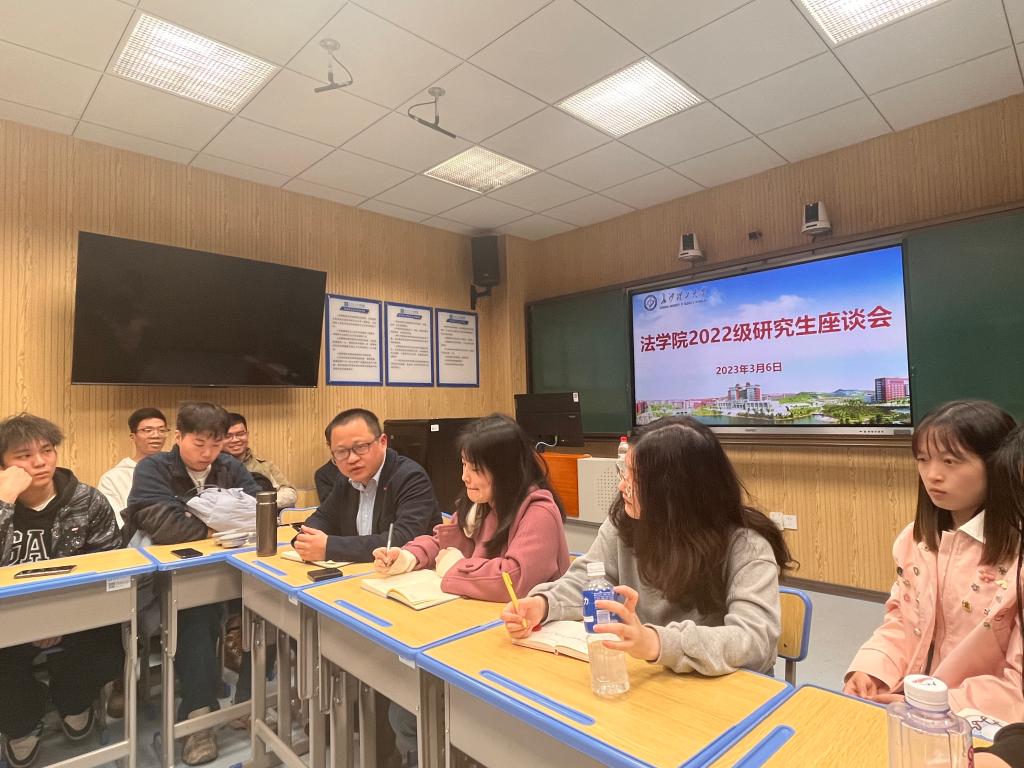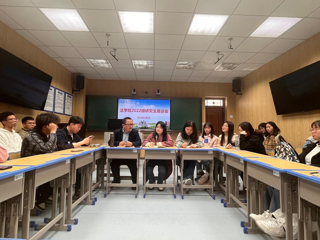 为了深入了解学生需求,做好学生管理及服务工作,3月6日下午,长沙理工大学法学院在金盆岭校区四教312智慧教室,组织召开2022级研究生座谈会。本次座谈会由研究生辅导员曾宇欣主持,法学院党总支副书记兼副院长汪功伟出席本次会议,全体2022级研究生参加。