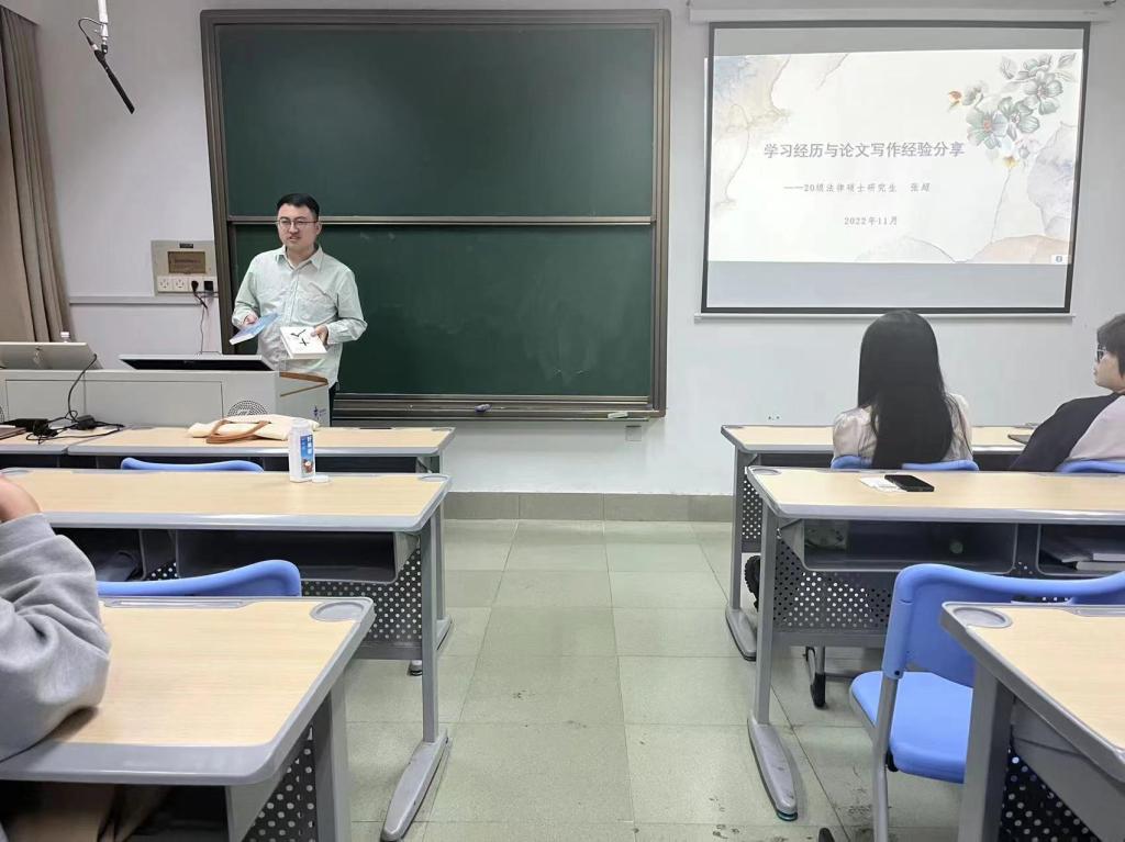 11月3日晚,法学院2022年研究生新老生交流会在金盆岭校区四教408举行, 2021级研究生喻文超、2020级研究生彭琛、张超进行了经验分享,22级全体研究生新生参会。