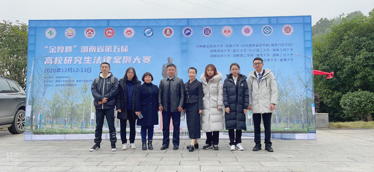 长沙理工大学法学系经过层层选拔,最终确定史敏、彭锦、彭倩、周磊、房佳琪、黄梓葳、张超7名学生赴湘潭大学参加“金厚杯”湖南省第五届研究生法律案例大赛。由长沙理工大学法学系杜卫红副教授、艾超副教授带队指导。本次案例大赛分为言词辩论竞赛、法律意见书竞赛。言词辩论竞赛分初赛、复赛和决赛三个阶段进行,采用单场淘汰制。法律意见书竞赛针对初赛案例撰写相应法律意见书,在言词辩论竞赛初赛阶段完成,采用评委评分制。经过参赛同学的不懈努力与杜卫红副教授、艾超副教授的耐心指导,我系在此次比赛中取得了“法律意见书竞赛”三等奖,同时,史敏同学在言辞辩论赛中荣获“最佳辩手”称号。