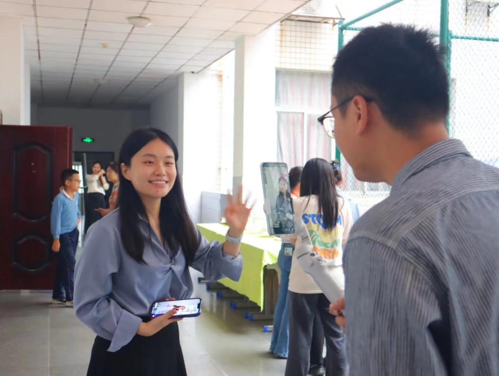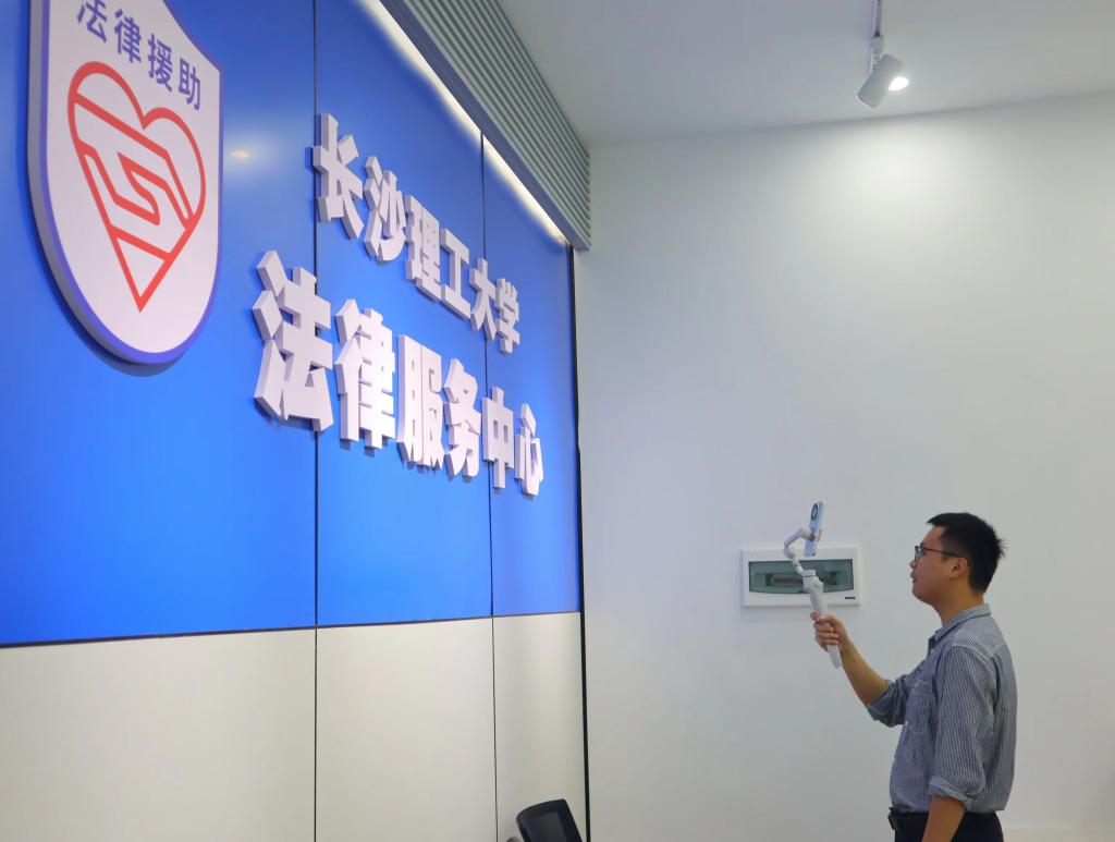 “各位新同学,我们现在的地理坐标是在长沙理工大学金盆岭校区的校门口。今天我们将沿校园主干道给大家介绍校园风光。”9月24日上午,法学院辅导员刘阳正手持自拍杆正在给屏幕前还未到校的大一新生直播逛校园,辅导员和志愿者们一路从东南门经电苑楼到四号教学楼(法学院),在法学院内带领新生线上参观了学术报告厅,聆听了正在举行的“人与自然和谐共生中国式现代化的法治保障”学术研讨会暨第三届湘鄂环境资源法学研究会联合年会,继而参观了长沙理工大学法律援助中心、智慧教室、辩论实训室、行政办公区域、模拟法庭、风雨球场等学院场地,并前往南苑操场、食堂、23级男生、女生宿舍等功能区域。