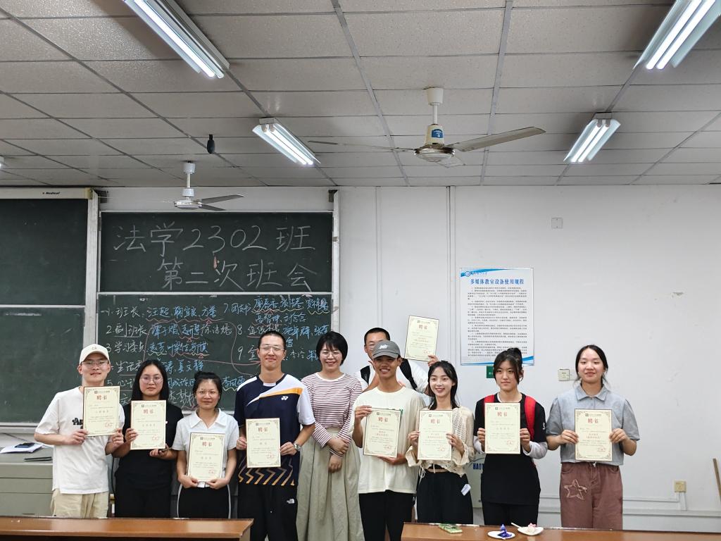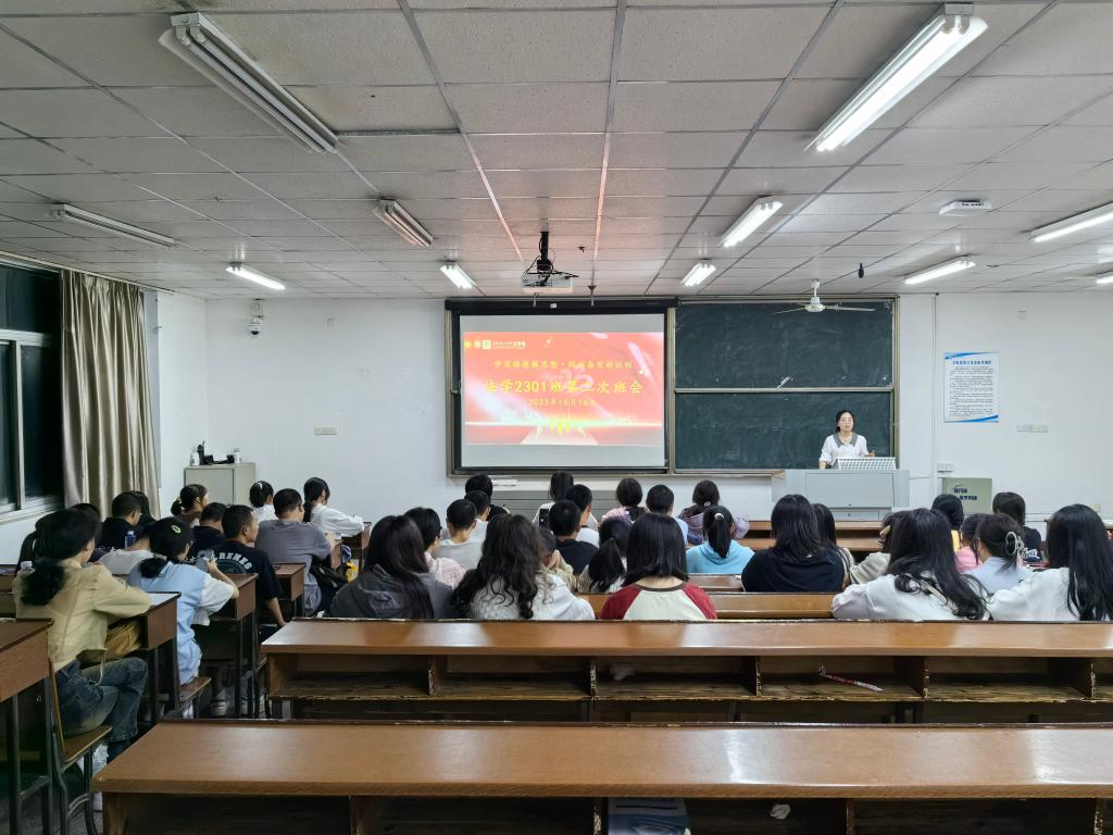 10月16日晚,法学院2023级各新生班级在四号教学楼自习室举行了第一次主题团日活动暨班委选举班会。院党总支副书记汪功伟,新生辅导员刘阳,各班班主任李殊、宁佳、孔凡琛,全体下班党员以及2023级全体新生参加活动。
