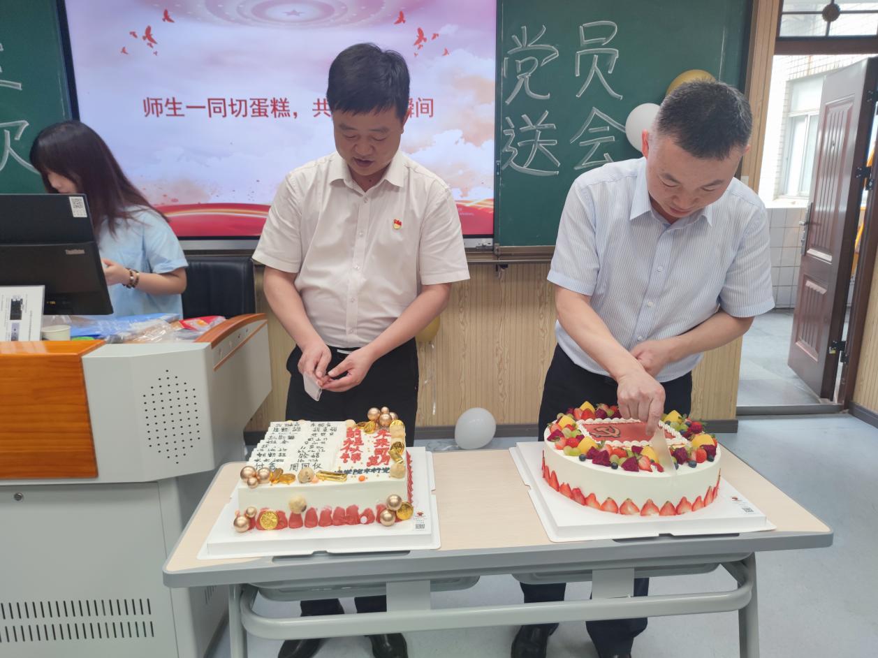 在祝福声中,低年级党员为毕业生党员们献上了原创诗歌:《送你一首金村的纪念》。龚文斌和汪伦代表学院党委,为毕业生党员们送上了一份特别的礼物:《中国共产党纪律处分条例》和长理专属明信片。师生一同重温入党誓词、共切一份毕业蛋糕,为毕业生送上最诚挚的祝福。