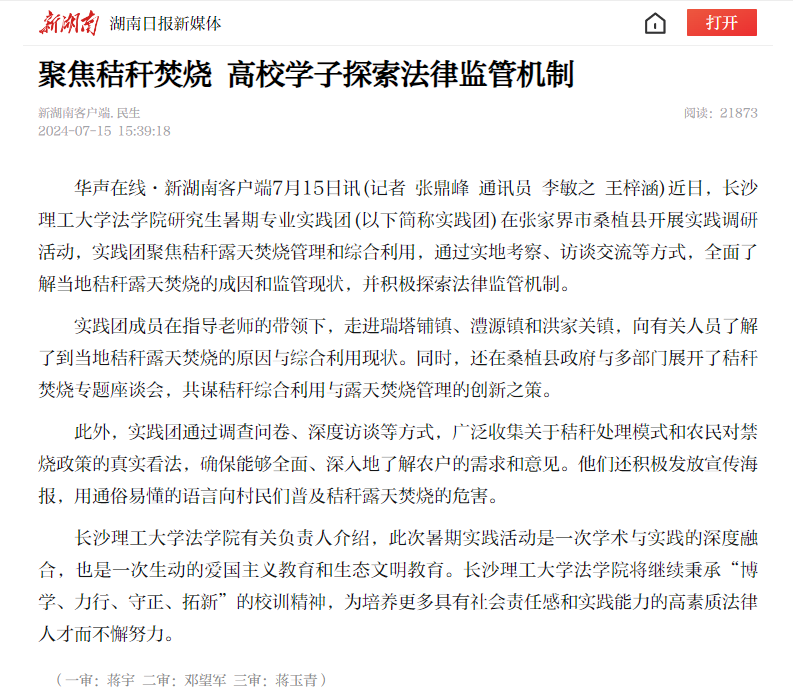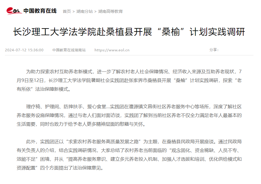 此次暑期社会实践活动不仅让学生们将所学知识与实践相结合,提高了专业素养和实践能力,还让他们深入了解了社会现实和基层需求。中国教育在线、新湖南、华声在线等多家社会媒体对长沙理工大学法学院学子的实践活动进行了深入报道和广泛传播,进一步提升了学院的社会影响力和知名度。