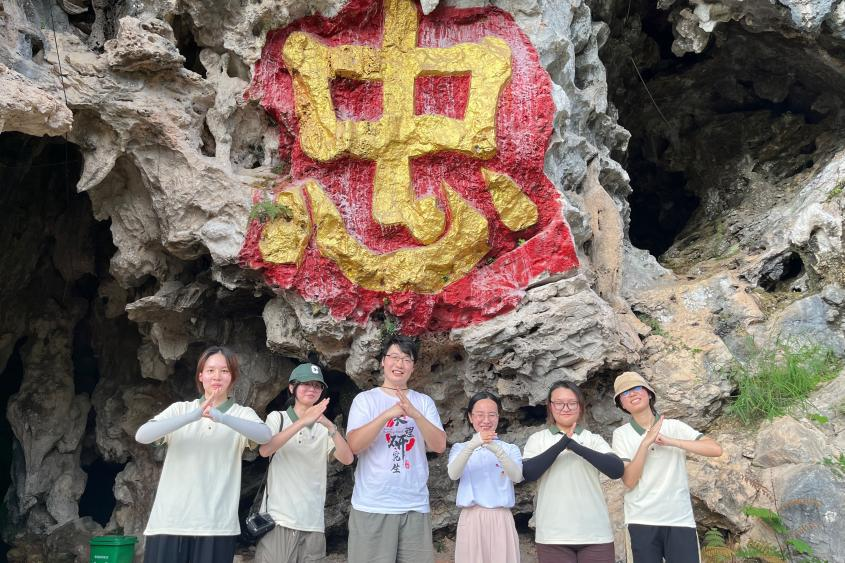 “梭子丘村的景点可多了,将军洞、茶马古道、五龙湖……”,每当问到当地村民梭子丘村的特色景点时,村民们总是会热情介绍。因此,团队成员下午来到当地景点实地考察。结合梭子丘村的景点分布与发展现况来看,该村的第三产业还存在较大发展空间,尚未实现旅游产业规模化。为此,村委会带领村民于2017年建成梭子丘白族风情老街,凭借着独特的民俗文化以及优美的自然风光,获得了“张家界小大理”的称号。梭子丘村的村支书刘开建在讨论时谈到:“我们希望大家在建设梭子丘村的过程中,能够因地制宜、突出特色,充分融入当地的自然风光及民俗风情,宣扬白族民俗文化,帮助当地人民能过上更好的生活。”刘书记的这段话,也让调研团队深深感受到青年担当在乡村振兴中的生动缩影。