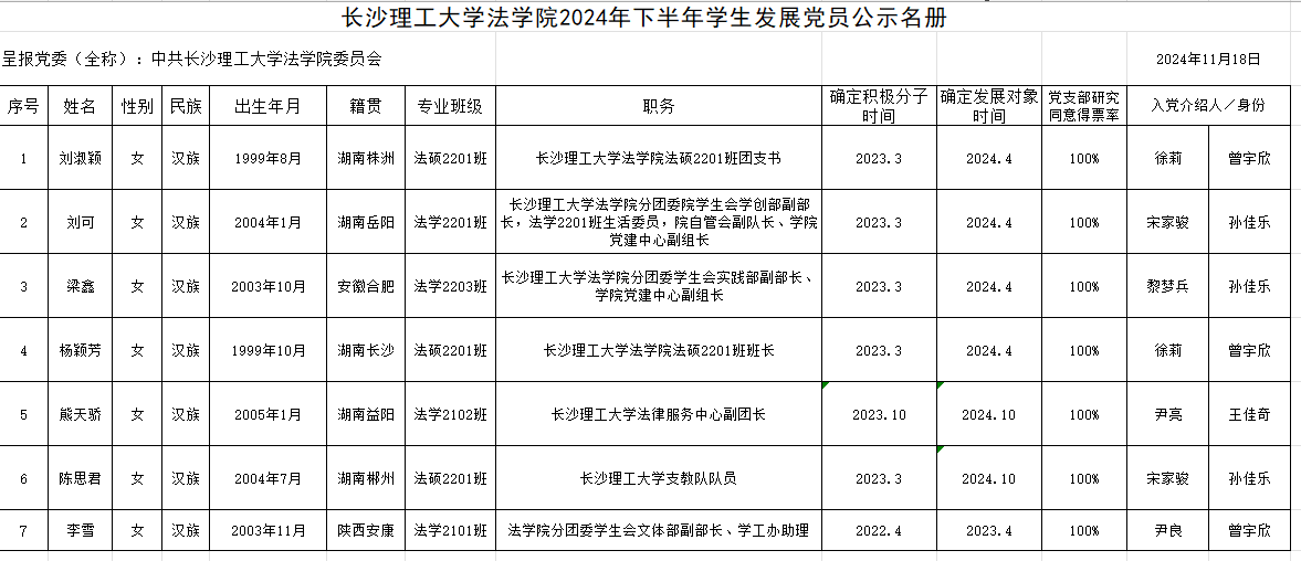 经支部委员会研究,并请示上级党委同意,拟接收刘淑颖等7名同志为中共预备党员。现将刘淑颖等7名同志的基本情况公示如下: