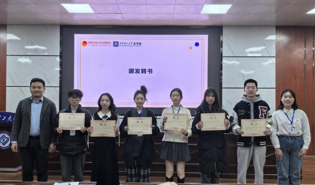 会议第三项,兰贵辉为各部门团委学生会各部门学生干部颁发聘书,这一环节不仅是对学生干部们辛勤付出的肯定,更是对他们未来工作的期许。随后,现场隆重举行了学院青年志愿者组织成立仪式,兰贵辉为学院“蒲公英”普法团授旗。