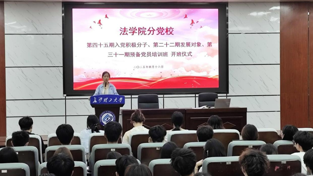 4月16日19点,法学院在金盆岭四教报告厅举行2025年春季学期党校培训班开班仪式。第45期入党积极分子培训班、第22期发展对象培训班及第31期预备党员培训班的全体学员参加。开班仪式由分党校学生干部王海川主持,党建辅导员孙佳乐参加。