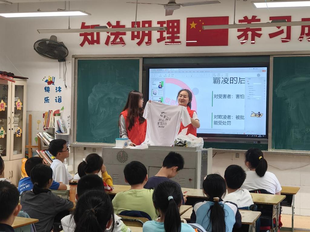 5月7日,长沙理工大学法学院蒲公英普法团依托法学学科优势,走进黄土岭小学六三班,以“反校园霸凌”为主题,创新打造了一堂兼具专业性与实践性的法治教育课。活动通过“情景模拟+法律释义+互动实践”的立体化教学模式,展现了法学院“以专业服务社会、以实践反哺育人”的鲜明特色,为青少年法治教育注入新动能。