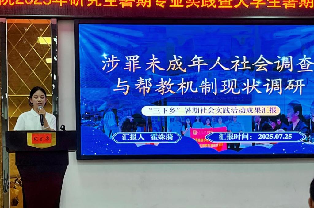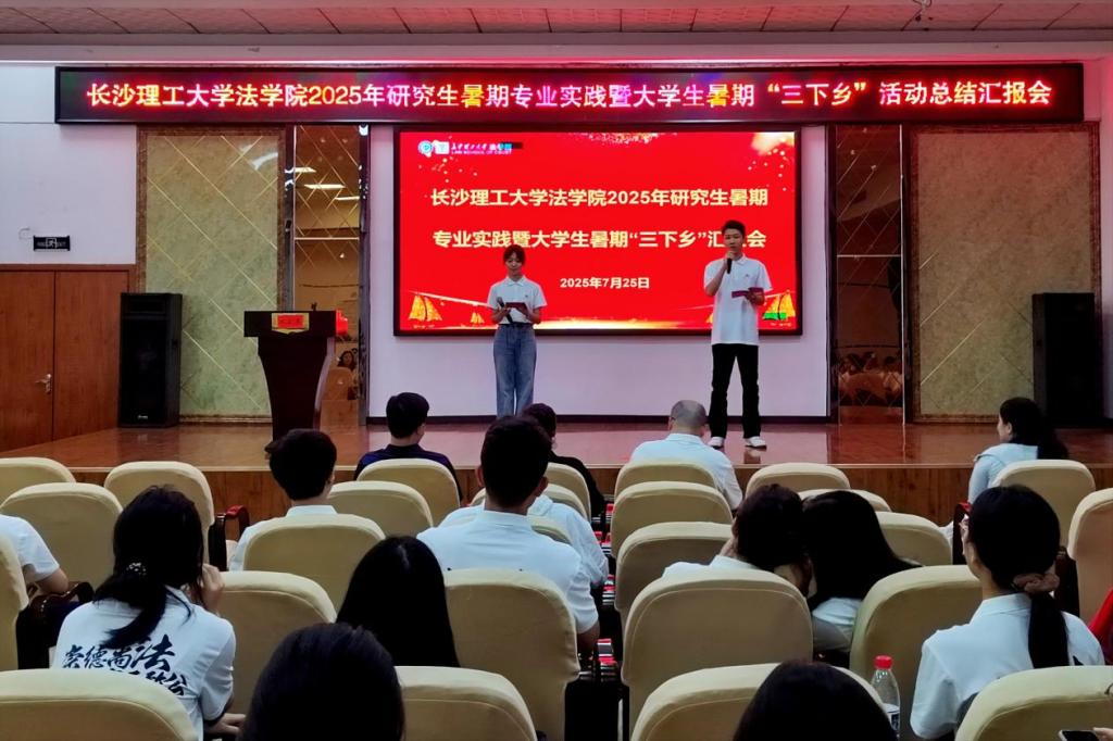7月的骄阳似火,却不及法学学子服务基层的热情。7月25日,在长沙理工大学法学院2025年研究生暑期专业实践暨大学生暑期“三下乡”总结汇报会上,7支实践团队用扎实的调研数据和动人的实践故事,交出了一份沉甸甸的“青春答卷”。法学院院长张敏纯、党委副书记汪伦、副院长申纯和指导教师盛喜、晏子昂、刘娉、曾宇欣出席。