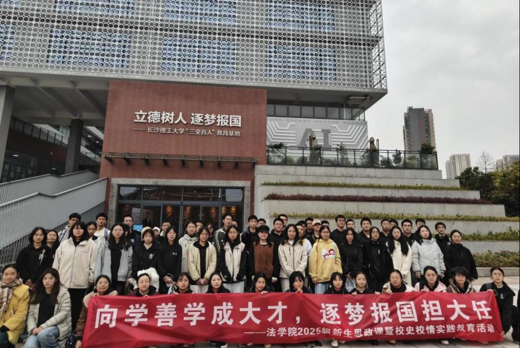 2025年12月2日,法学院组织2025级研究生和本科生走进长沙理工大学“三全育人”教育基地,开展沉浸式校史校情实践活动。在辅导员曾宇欣的带领下,同学们通过系统参观与互动体验,深入感知学校“工程报国”的使命传承与“三全育人”的深厚底蕴。