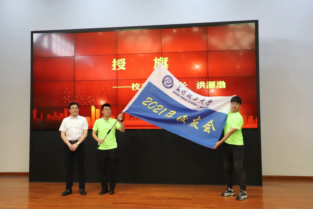 洪源渤上台宣布2021届校友会正式成立,并为本届校友会授旗。