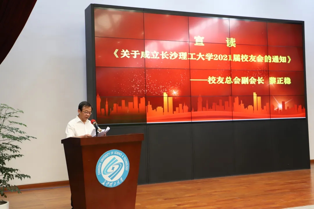 会上,黎正稳宣读了《关于成立长沙理工大学2021届校友会的通知》,公布了251名理事会成员名单并对2021届校友会的成立表示祝贺。