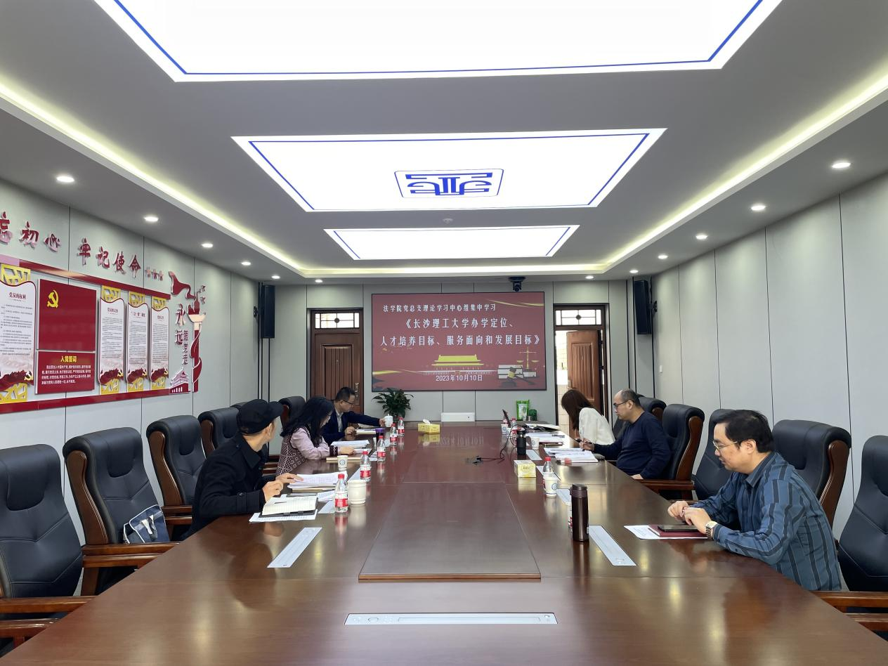 2023年10月10日,为进一步深入学习中共长沙理工大学委员会〔2023〕40号文件,按照校党委统一部署,法学院党总支理论学习中心组在金盆岭校区四号教学楼313会议室,开展《长沙理工大学办学定位、人才培养目标、服务面向和发展目标》集中学习。学院全体党政班子成员参加,党总支书记田兴洪主持。