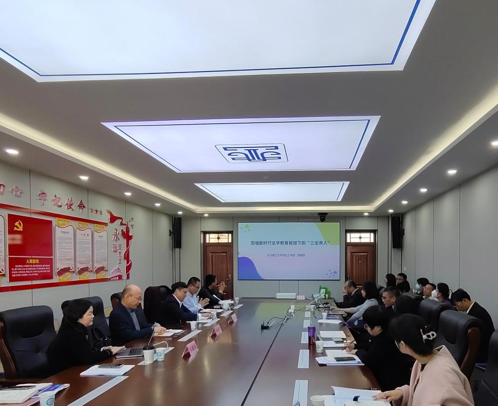 11月21日下午,法学院在金盆岭校区四教学楼313会议室召开“新法科三全育人体系”建设专题务虚学习研讨会暨“三全育人”项目建设经验交流会。中南大学法学院党委书记李华东、长沙理工大学学工部部长邱国良出席会议并讲话,院党总支副书记、副院长汪功伟主持会议,学院相关领导及全体教职工参加会议。
