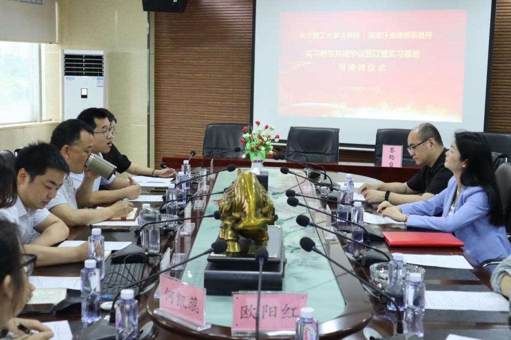 如何让广大法科学子获得来自知名律所令人心动的Offer?金牌律师的职业素养如何在校园里得以前置训练?以工程法为代表的领域法研究如何更好地链接实务......5月28日,长沙理工大学法学院院长张敏纯率队先后走访权度律师事务所、湖南汗青律师事务所、湖南天地人律师事务所等省内多家知名律所,就校所互联新模式展开讨论,签订《校外实习基地协议书》《“校地合作”大学生社会实践基地意向书》并挂牌实习教学基地、社会实践基地。副院长申纯、就业专干刘阳参与走访与座谈。