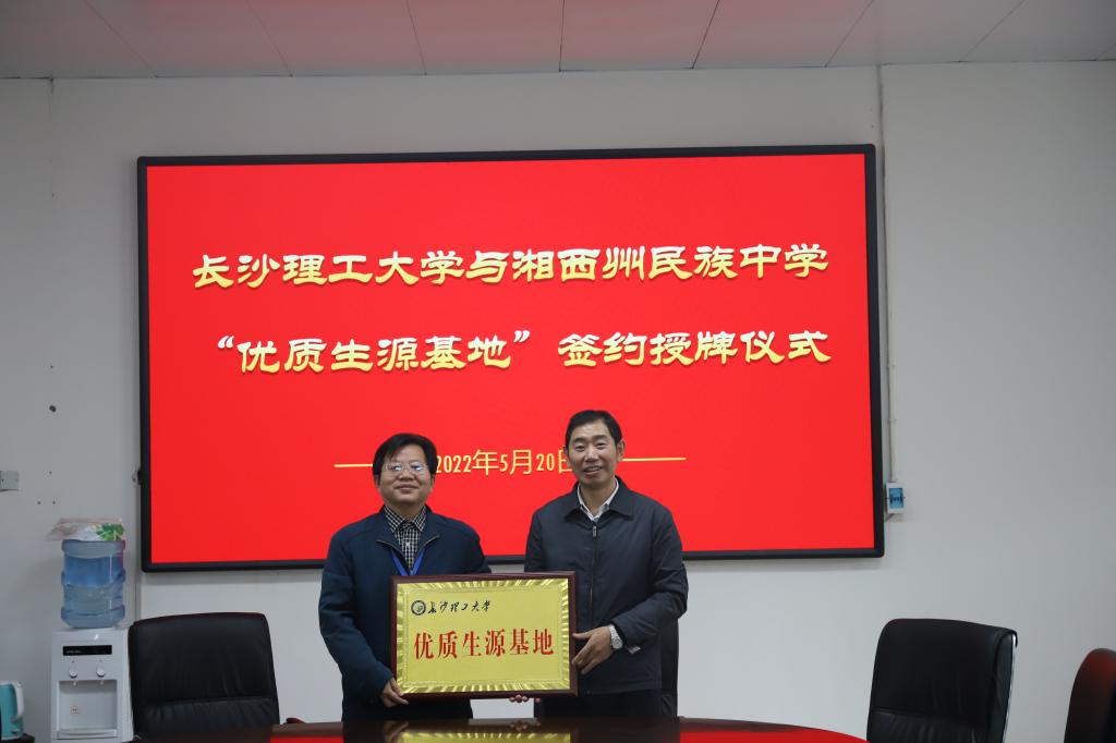 高校如何扎根三湘大地办教育,满足三湘人民对更高质量高等教育的向往?5月20日,长沙理工大学招生宣讲团赴吉首市开展招生宣传活动,并与湘西土家族苗族自治州民族中学、吉首市第一中学两所湖南省省级示范性高级中学进行优质生源基地签约与授牌仪式,在探索优化高校高中融合育人道路上再迈新步伐。