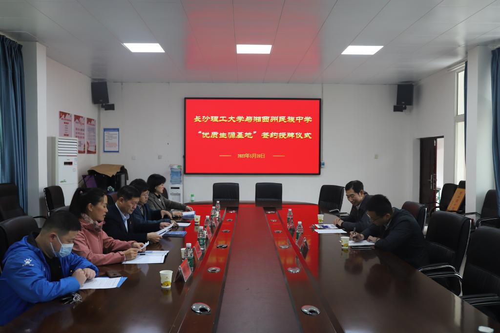 长沙理工大学法学院党总支书记田兴洪、副书记汪功伟、招生专干刘阳,及两所高中全体在家校领导、高三班班主任代表参加相关活动。签约授牌仪式与宣讲活动先后在州民中与吉首一中会议室举行。