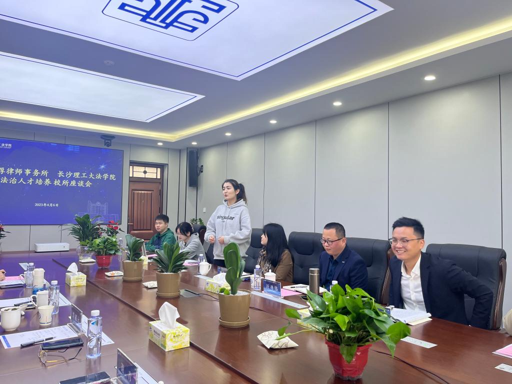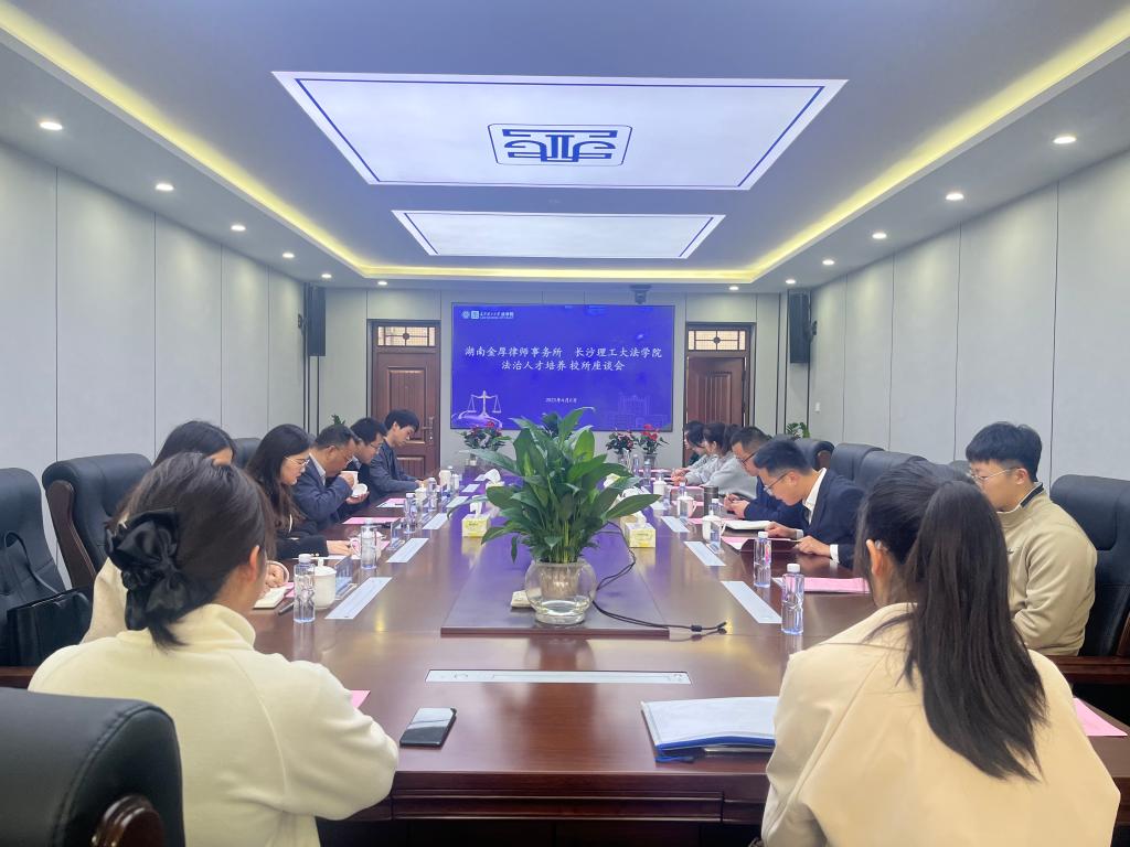 4月6日上午,长沙理工大学法学院与湖南金厚律师事务所“法治人才培养”专题座谈会在金盆岭校区四教法学院会议室举行。湖南金厚律师事务所董事会主席肖超元、管委会副主任雍彬、管委会秘书文凯、团支部副书记谢青、骨干律师何凯蕊,法学院党委副书记汪功伟、就业专干刘阳、2021级本科生辅导员曾宇欣及毕业生代表等出席了本次座谈会。