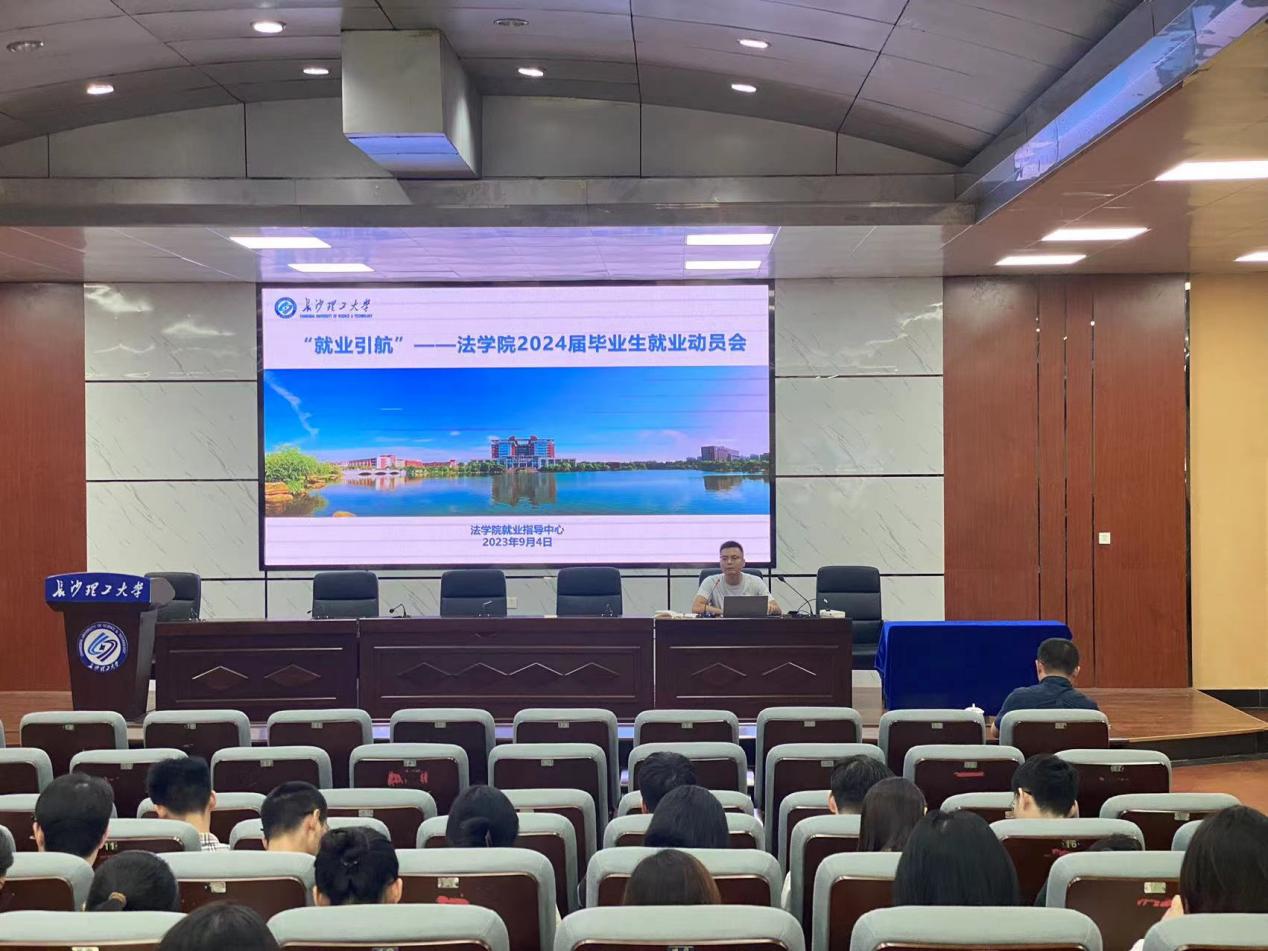 为帮助毕业生及时了解就业形势及相关政策,更好把握“金九银十”的就业机遇,9月4日下午,法学院于金盆岭校区四教报告厅举行了2024届毕业生就业动员会。法学院党总支副书记汪功伟出席会议,2024届毕业生辅导员及全体2024届毕业生到场参会。会议由法学院就业专干刘阳主持。