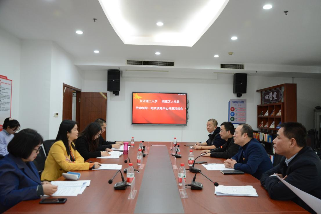 我院与雨花区人社局的各位领导互动探讨后达成完美共识。人社局调处中心表示:“坚持以人民为中心的理念,完善相互协调的多元化纠纷解决体系,不断满足职工群众多元化需求,降低维权成本,缩短维权周期,提高维权质效,在促进构建和谐劳动关系以及市域社会治理现代化方面发挥积极作用。”我院领导、师生对此表示高度的认可和期待。为深化校企合作育人、发挥高校服务地方经济社会的职责,长沙理工大学法学院将对雨花区人社局区劳动纠纷调处中心提供高智力服务和人力资源支持,并此为平台促进法科学生实务能力提升。民生无小事,望法学生们保持对法律职业的敬畏,积极前往调处中心实践修行,祝此次校局合作取得圆满成功!