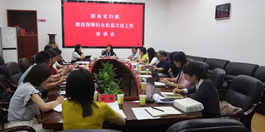 2021年8月19日下午,湖南省妇联召开“推进保障妇女合法权益立法工作座谈会”。参加本次会议的有省妇联副主席方琼、省人大社会委社会监督处处长伍先芳、省妇联权益部部长罗琼,以及来自省内高校、律协、省妇联等各方代表,我院张敏纯院长、阳明武副教授、陈骞博士、尹迪博士应邀参加座谈会。