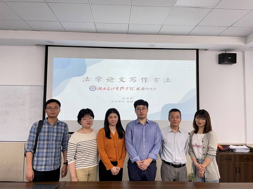 5月6日,法学院在金盆岭校区7教319教室举办了主题为《法学论文写作方法》的法律硕士第七期学术沙龙,由段泽孝博士主讲。段泽孝博士是长沙理工大学的优秀校友,中南大学博士毕业,现任湖南省社会科学院《求索》杂志社助理研究员、法学编辑,主要从事行政法学研究和《求索》杂志法学编校工作。此次活动由张敏纯院长主持,王新生教授、王寰博士、刘明萍博士、辅导员刘阳参加,全体硕士研究生参加了此次沙龙。