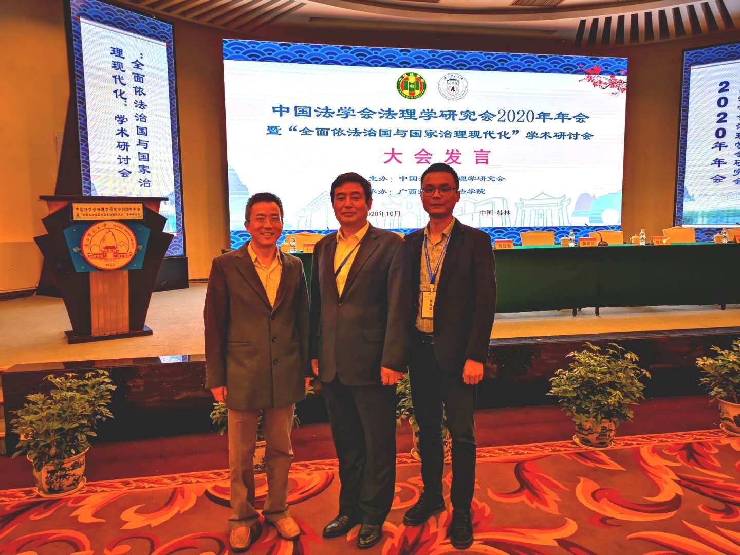 2020年10月17日-18日,由中国法学会法理学研究会主办、广西师范大学法学院承办的中国法学会法理学研究会2020年年会暨“全面依法治国与国家治理现代化”学术研讨会在桂林隆重举行。中国法学会副会长、全国人大常委、全国人大监察和司法委员会副主任委员、教育部法学教学指导委员会主任委员、中国法学会法理学研究会名誉会长徐显明,广西壮族自治区人民检察院检察长、自治区法学会会长崔智友,江苏省原人大常委会副主任公丕祥,中国法学会法理学研究会会长、中国社会科学院学部委员李林,广西壮族自治区党委政法委常务副书记莫亦翔,自治区法学会党组书记、常务副会长、自治区党委政法委委员黄光华,中国法学会法理学研究会副会长、西南政法大学校长付子堂,广西师范大学党委书记邓军,中国法学会研究部社团管理处二级调研员孙立军,桂林市委常委、政法委书记赵志军等领导出席,来自全国高校以及科研机构的460多名法理学专家学者、法律实务工作者和法理学研究生参会。