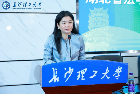 长沙理工大学党委委员、副校长蒋璟萍教授出席会议并致辞,充分肯定了法学院在特色法学人才培养、交叉学术成果产出以及服务地方经济社会发展等方面的突出成绩。她指出“此次学术会议的召开为进一步推动习近平生态文明思想在湖湘大地的学习宣传、研究阐释、贯彻落实走深走实搭建了良好平台”,同时代表学校对与会的专家学者表示热烈欢迎,并预祝会议取得圆满成功。
