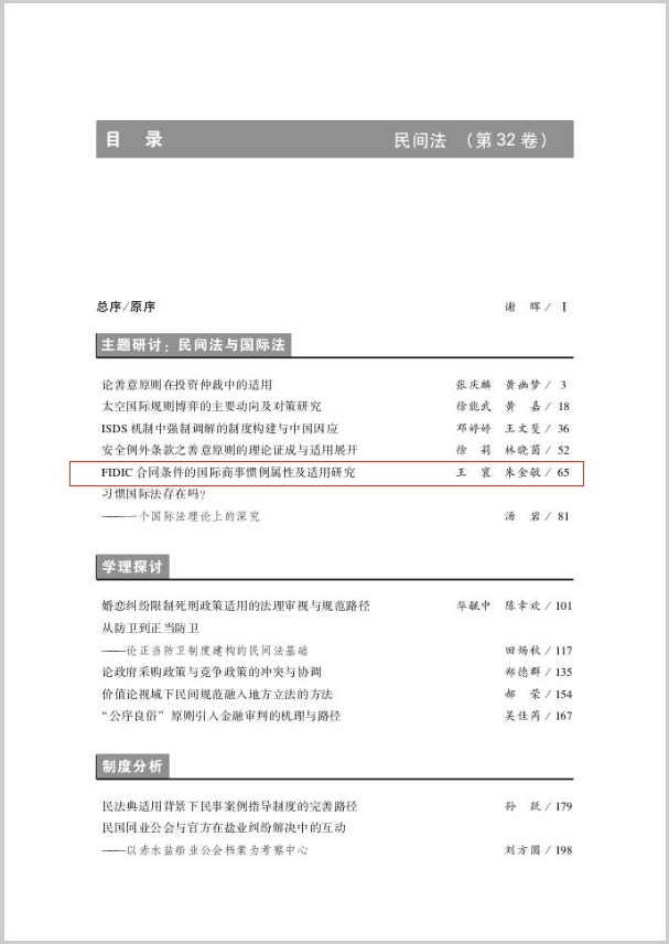 近日,长沙理工大学法学院副教授王寰在《民间法》(CSSCI来源集刊)2023年第2期发表论文《FIDIC合同条件的国际商事惯例属性及适用研究》。
