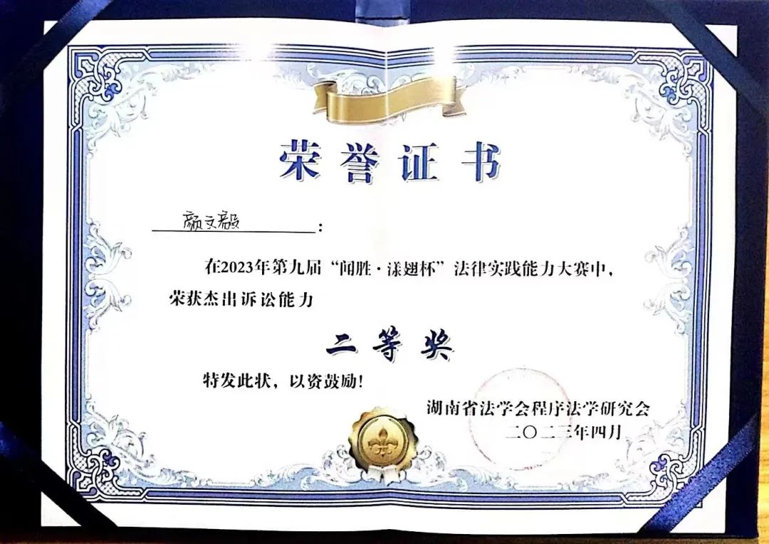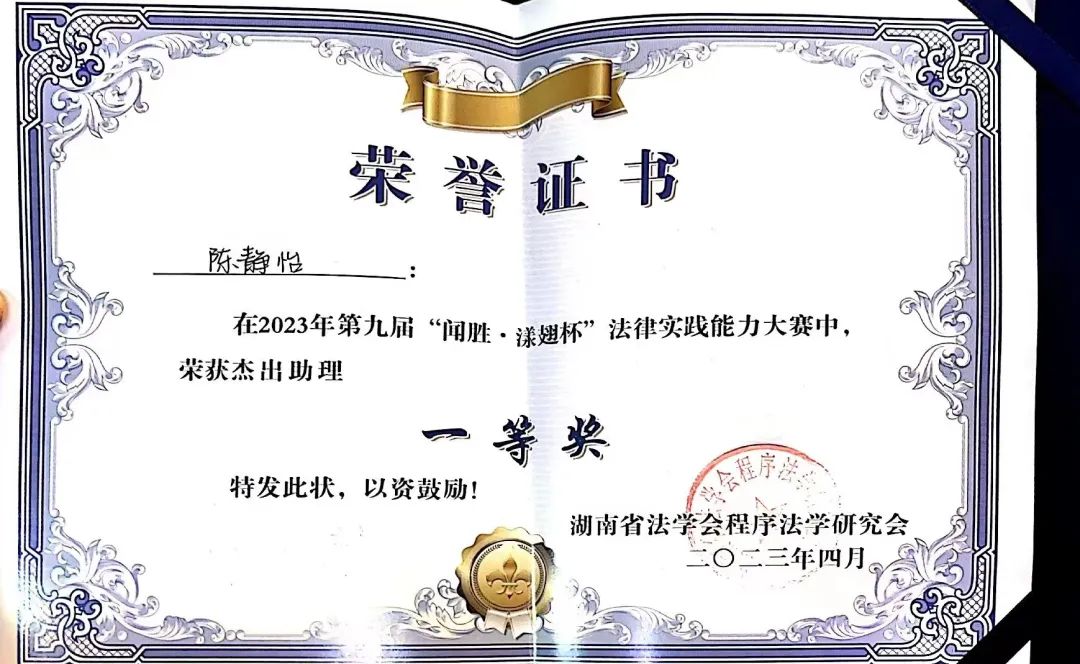 庭审阶段,雷竞技官网队员们胸有成竹、雄辩涛涛。赛场上与被告方你来我往、针锋相对,展现出了优异的法律实践能力。凭借着老师的专业指导及队员们的齐心协力,最终夺下了团体一等奖等多项奖项。