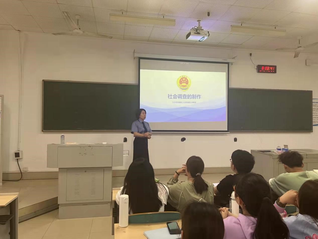 2022年4月28日上午8时,为促进学生认识和理解社会调查,帮助法科学子成长成材,法学院在综合教学楼B101举行了社会调查培训讲座。本次培训讲座,由刘文莉副教授主持,芙蓉区检察院未检检察官徐艳侠主讲,法学院本科20级全体学生参加。