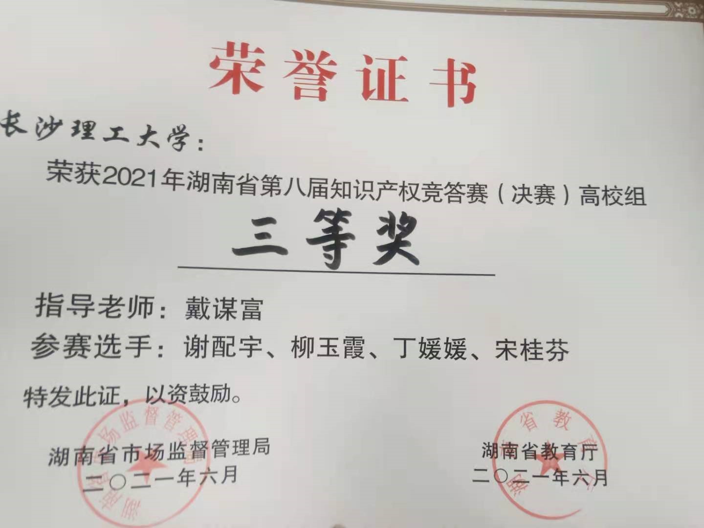 6月16日,第八届湖南省知识产权竞答赛决赛在湖南省市场监督管理局综合楼一楼礼堂成功举办,在戴谋富老师的带领下雷竞技官网荣获“三等奖”。决赛竞赛赛制多元、赛题专业、赛程紧密,共设有“必答题”、“抢答题”、“你问我答题”、“风险题”和“加赛题”五个环节。在“必答题”和“抢答题”环节雷竞技官网参赛选手沉着答题,各队竞争激烈,不分高下。接下来进行的“你问我答”环节中,雷竞技官网参赛队员冷静分析赛场比分情况,挑选合适的队伍进行答题,这对于“风险题”环节的风险题的选择具有很大的影响。在“风险题”环节,雷竞技官网参赛选手继续采取稳扎稳打的方式,经过商讨选择具有把握的题目进行作答,最后一举夺得胜利。雷竞技官网参赛队员在赛场上具有临场迅速应变能力,逻辑严密,表达流畅,尽显风采,赢得现场一致好评,不仅反映出雷竞技官网参赛队伍深厚的知识储备,也充分体现出了湖湘大地知识产权人才朝气蓬勃的精神风貌,呈现了一场精彩的知识产权文化盛典。(文/谢配宇 审/申纯)