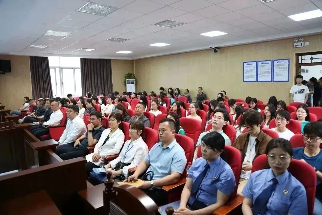 为强化法学实践教学,深化协同育人,切实增强校园禁毒普法的针对性和实效性,在“6.26国际禁毒日”来临之际,6月25日上午,我院与长沙市天心区人民法院联合开展“庭审进校园,青春不毒行”禁毒主题宣传活动。长沙市天心区委常委、政法委书记孙泉,长沙市天心区人民法院党组书记、院长周丹,天心区法院党组副书记、副院长胡精华,法学院党总支书记田兴洪,法学院副院长申纯等领导出席活动,我院80余名学生代表参与旁听。省、市多家媒体进行了现场报道,直播在线观看人数累计超过一百万。