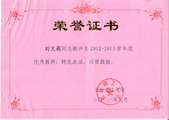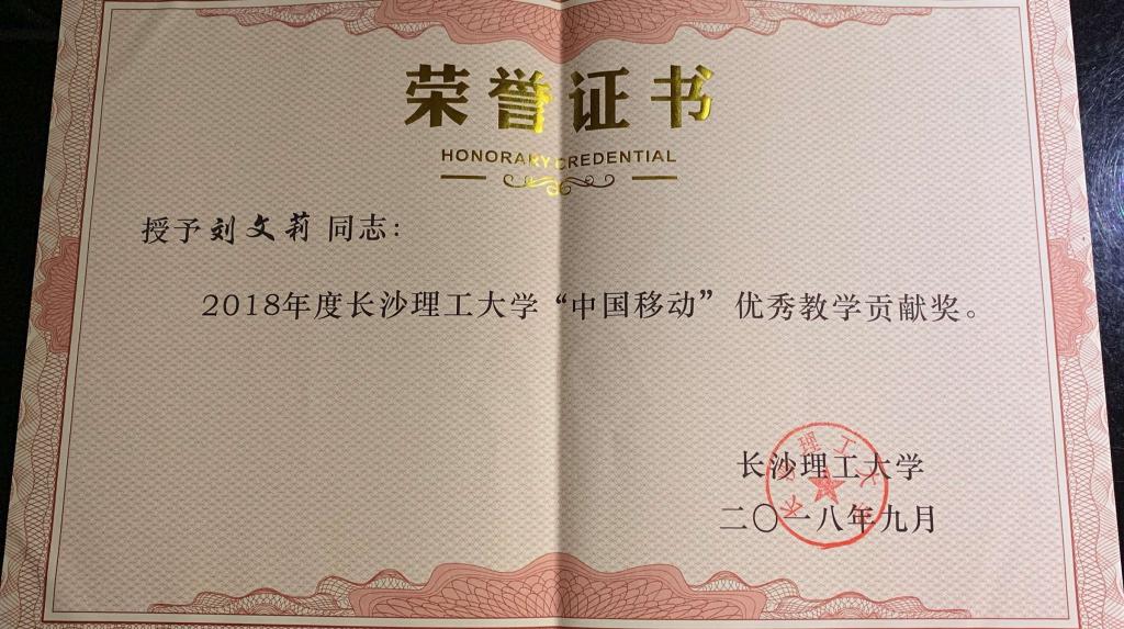 刘文莉老师不仅在《专业社会调查》课程和各类竞赛指导上投入了大量时间和精力,在日常教学中同样一丝不苟、精益求精。课前她认真备课,课上她详尽讲解,课后她耐心解惑。每年一次的本科生、研究生毕业论文答辩,她指导的毕业论文总是内容丰富,格式规范,体系严谨,资料翔实,表述清晰,结论科学,堪称范本,赢得师生的一致称赞。大家都知道,亮眼的成绩的背后,是她几十年如一日对于人民教师光荣职责的坚守,是她立足教书育人岗位发挥共产党员先锋模范作用的写照。凭借丰富的法律实务经验,她将实践知识融入教学,以无私奉献精神和对教学的深沉热爱,赢得了学生和同事的广泛赞誉。2013年度,她荣获长沙理工大学“优秀教师”称号、长沙理工大学“芙蓉百岗明星”称号。2018年,刘文莉老师荣获长沙理工大学“中国移动”优秀教学贡献奖。