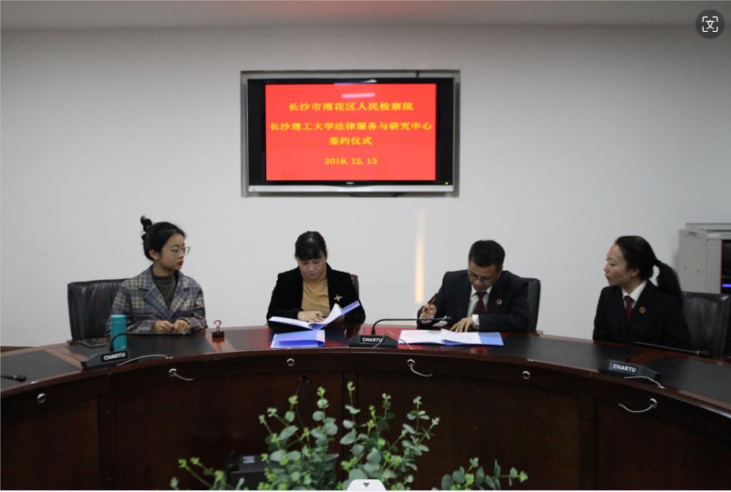 刘文莉老师代表长沙理工大学法律研究与服务中心与雨花区人民检察院签订社会调查合作协议。
