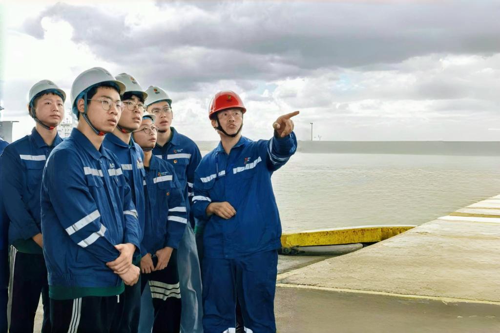 在码头区域,运行专责金宏系统介绍了卸煤、输煤、环保处理等各类码头设施的结构、功能及操作规范。队员们积极提问,金宏耐心解答,现场互动交流气氛热烈。