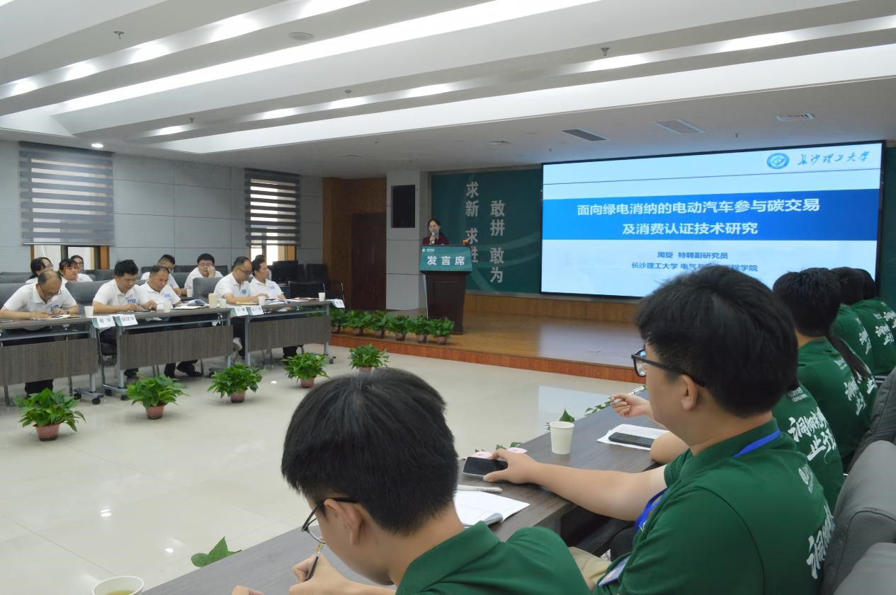 随后,带队老师周旋围绕“面向绿电消纳的电动汽车参与碳交易及消费认证技术研究”主题展开演讲。她谈到,在“双碳”目标引领下,电动汽车产业快速发展既带来新机遇,也伴随着诸多挑战,现场就车网互动技术应用、碳交易路径探索、用户参与度提升等问题进行了深入分析。她表示,相关技术研究与人才培养的协同推进,将为能源转型与电动汽车产业进阶注入低碳动能。
