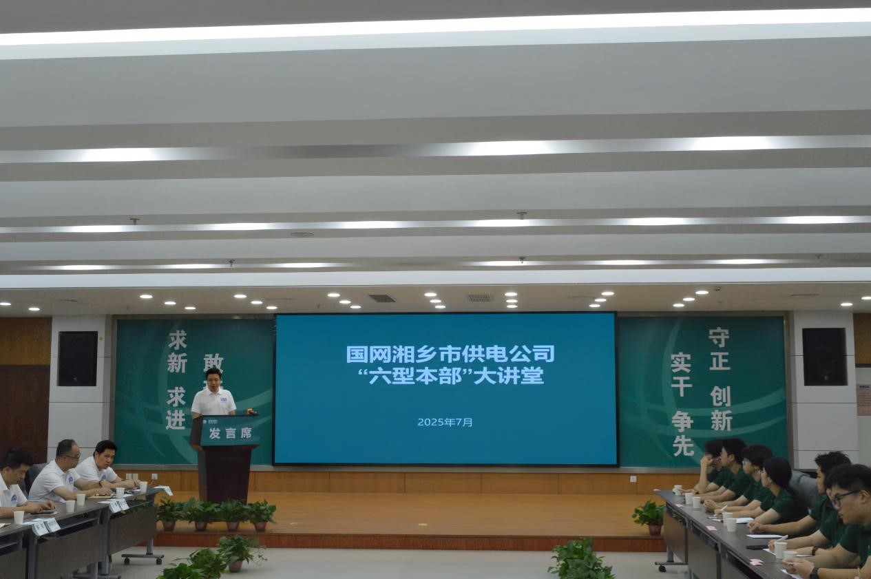 7月21日下午2点30分,国网湘乡市供电公司联合电气学院赴国网湘乡市供电公司实践队围绕配网提质与绿电发展主题开展第一期“六型本部”大讲堂,公司总经理贺雄杰主持会议,为这场聚焦电网发展与创新的交流活动拉开序幕。
