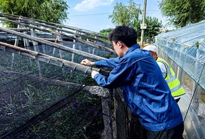 炎炎烈日下,一排排蔬菜大棚在阳光下熠熠生辉,实践队员们在刘师傅的指导下对大棚进行加固绑定。作为国家蔬菜保供的重要基地,青州每一座大棚都关系着千家万户的“菜篮子”,更牵动着全国供应链的安全。加固大棚一方面可以防止大风将大棚吹起影响高压线路安全,另一方面也守护着农户的劳动成果,为国家蔬菜安全筑牢第一道防线。青州市供电公司在保障电力安全的同时,主动担当社会责任,建立“大棚绑定”常态防护机制。