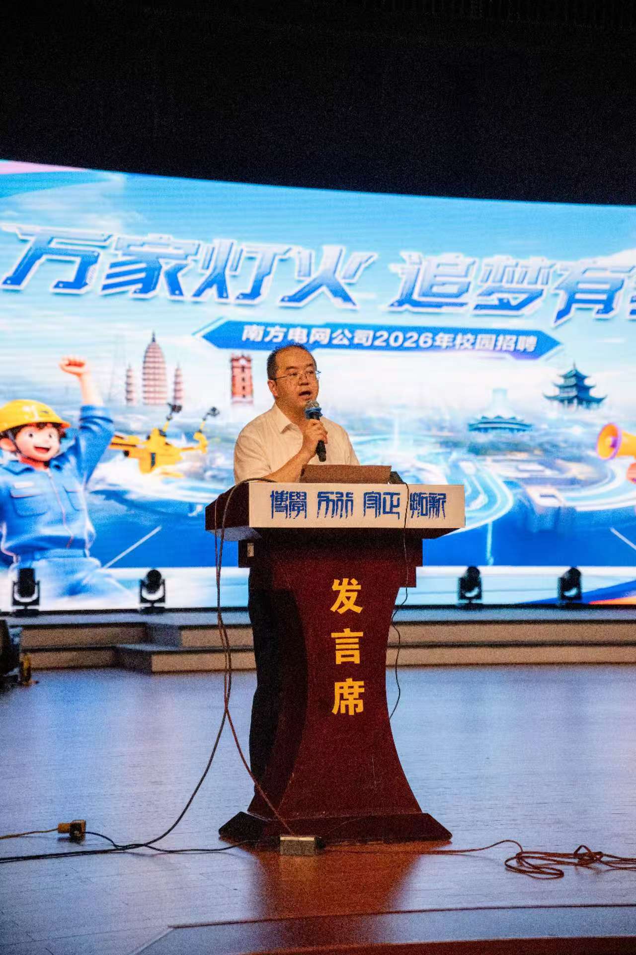 9月24日,中国南方电网有限责任公司2026届毕业生招聘宣讲会在雷竞技官网云塘校区大会堂举行。云南电网有限责任公司人力资源部副主任谢汉竹一行来校宣讲,学校就业创业处处长田上,电气学院党委书记丁丹、党委副书记周巍等领导出席,千余名学子及部分家长踊跃参与,现场座无虚席,气氛热烈。