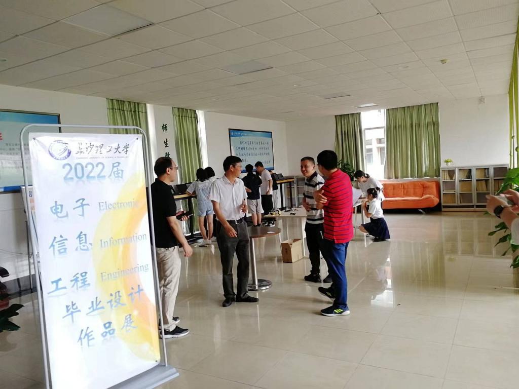 2022年6月14日上午十点,在长沙理工大学云塘校区工一B区三楼大厅举办了电气与信息工程学院电子信息工程专业2022届毕业设计作品展。本次毕设作品展邀请了电气学院副院长唐欣教授、樊绍胜教授、智电系电子专业曾喆昭、李鸿、王小华等20多位教师观摩评价,电子信息工程2018级全体毕业生以及2019、2020级部分学生参加。参加观摩评价的老师们与毕设参展作品的每位同学进行交流,探讨作品,同时给予相应的建议。老师们这最后一堂现场课不仅是传授着知识,更是表达了对即将完成学业的毕业生最美好的期许。经现场演示和老师们的评议,作品展最后评出了一、二、三等奖共8件优秀作品。